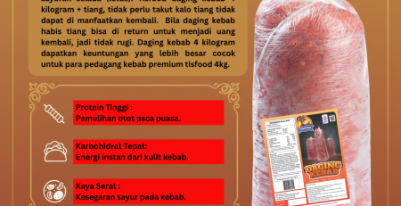 Jual Daging Kebab dengan varian ukuran Daging 1 kg 2 kg serta 4 kg, Jual Tortilla Wrap ( Kulit Kebab ), Jual Daging Kebab Slice varian 250 gr dan 500 gr. Jual Daging Burger , Jual Bakso Varian 700 gr dan 375 gr.